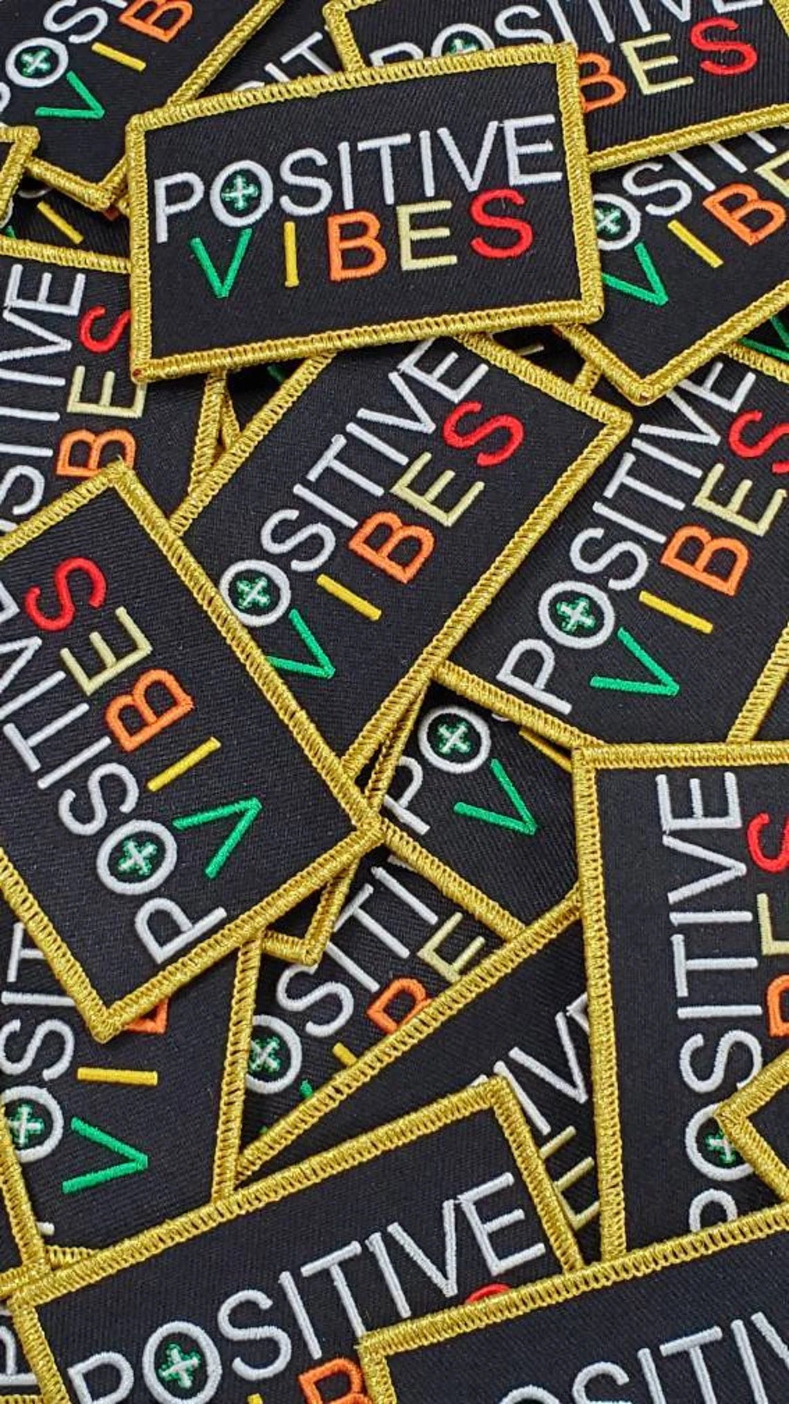 "Positive Vibe" 2 inch, Cool Applique For Clothing, Iron-on Embroidered Patch